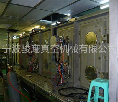 3.鍍膜製程區(qū):本區(qū)域設(shè)計共8個濺射陰極,採用上方四個、下方四個,並以左右對稱之方式設(shè)計,配置一個10FCryo pump,前後 各配置一個(共兩個)方形閘閥,使入料及出料可保持真空。